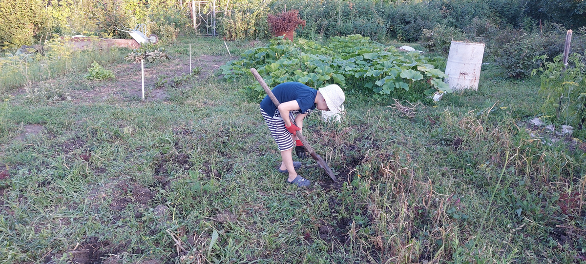 Старший внук выкопал аж две грядки из четырех. Фото его В РАБОТЕ нет, но вот напишу тут немного об особенностях восприятия городских детей этого ароматного и полезного овоща и его уборке.