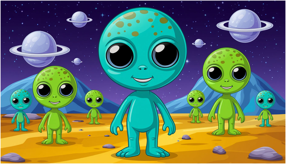 На планете Дзен-8, где яркие оранжевые деревья тянулись к небу, а реки были из кисло-сладкого сока, жили высокоразвитые существа – дзенцы. Они были любознательными и беспрестанно искали новых знаний. Как-то во время наблюдения за космосом один из дзенцев, которого звали Блгр, заметил, что на планете, вращающейся вокруг звезды типа «желтый карлик», присутствуют признаки жизни. – Глядите, – сказал Блгр сородичам, указывая на монитор. – На этой планете живут разумные существа. Они называют себя землянами! Дзенцы стали изучать открытую планету и скоро поняли, что земляне ведут себя достаточно странно. Они немало времени проводили, пялясь в маленькие экраны, фотографировали себя или наблюдали, кто победит в спортивных играх. Блгр и его друзья не сдерживали смех: – Надо все-таки проверить, разумная ли это жизнь! Дзенцы решили направить на Землю послание, написав: «Привет, жители Земли! Мы наблюдаем за вами и питаем надежду, что вы однажды станете разумными!» Послание долетело до Земли, но лю