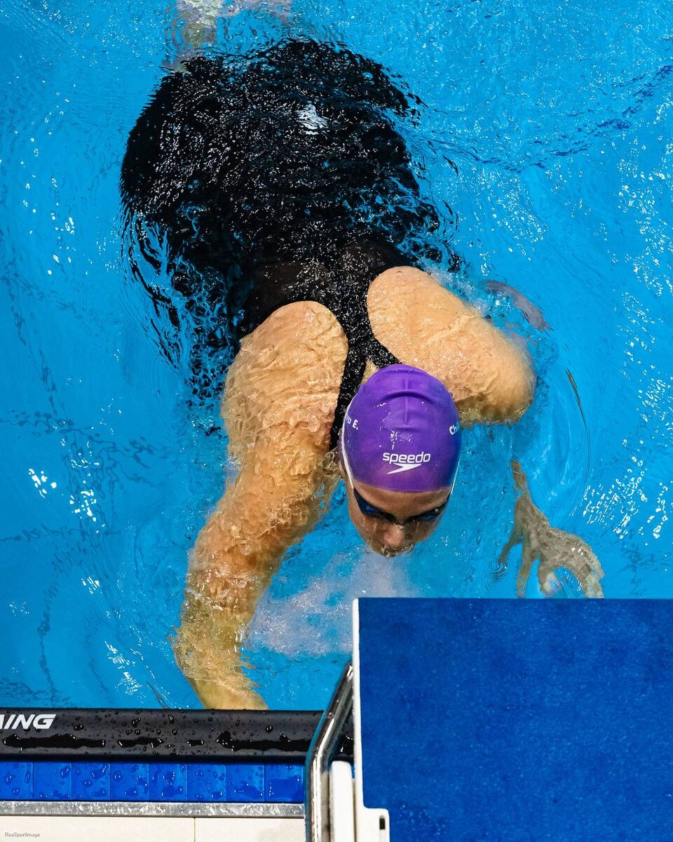 Евгения Чикунова завершает полуфинальный заплыв с четвертым результатом - 1:05.97