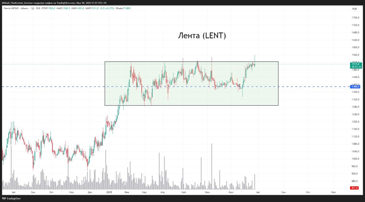 🍏Лента меняет наименование на «Группа Лента» и регистрирует новый логотип #LENT $LENT релиз По графику кстати очень долгое накопление, из которого пока не получается выйти. А вот если выйдем... 🚀