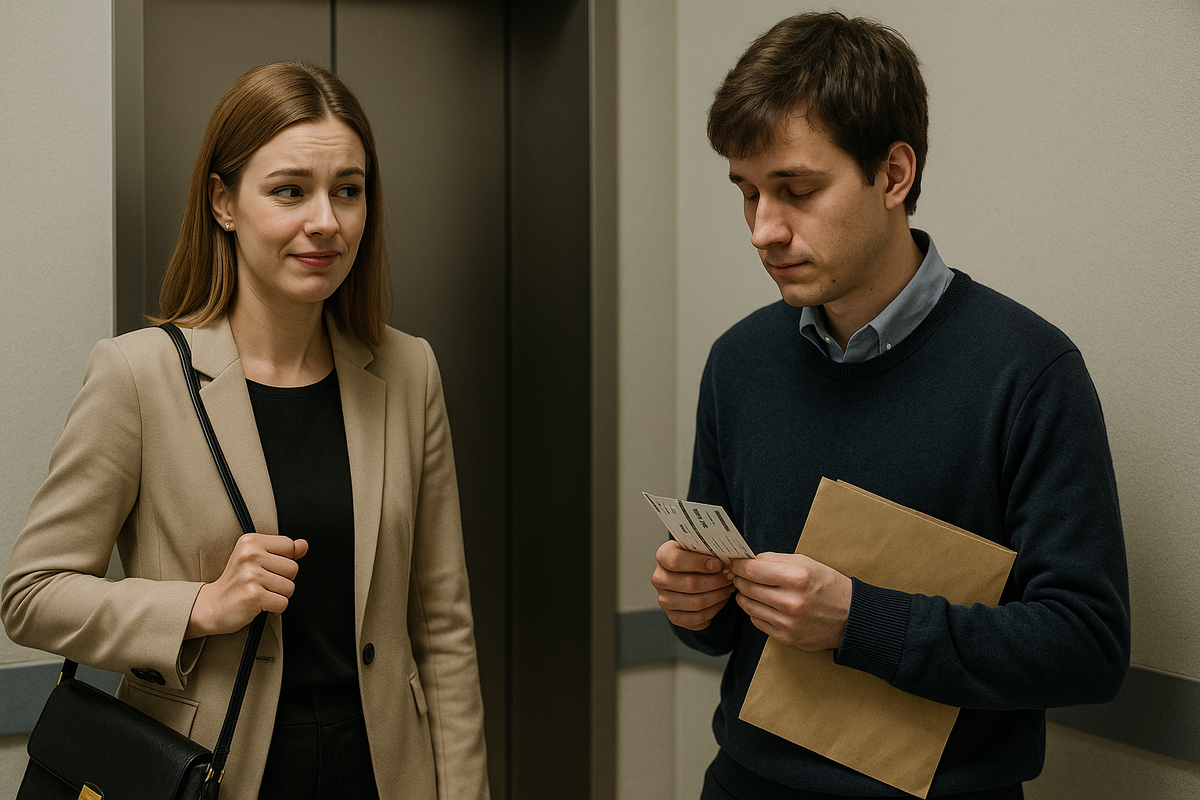 Катя обернулась и сразу пожалела. Это был Саша — скромный парень из бухгалтерии. Вечно мялся, с папками в руках и боялся сделать лишний шаг.