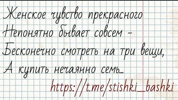 Про спонтанное #женщина #красота #шоппинг #стишкиизбашки Стишок каждый день для настроения @stishki_bashki 📹 - видеостишки тут 👈 🙊 - а тут можно комментировать 👈 Поделитесь стишком с друзьями