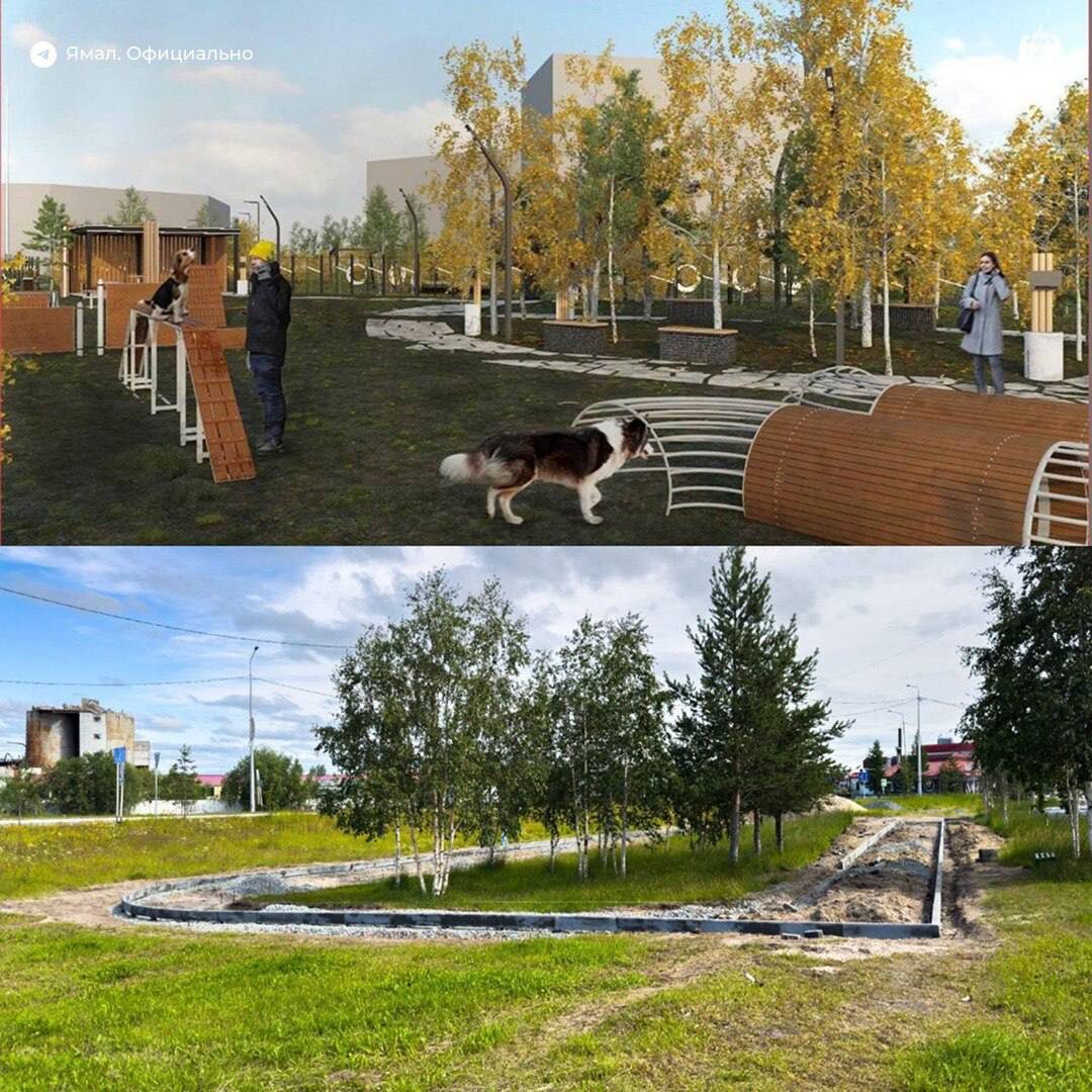 В Надыме приступили к строительству площадки для выгула и дрессировки собак 🦮 Новое пространство площадью 900 м² обустраивают в центре города, в районе кольцевой развязки. Здесь появятся скамейки, лесенки, тумбы, горки и полосы препятствий для собак. ℹ️ С просьбой построить круглогодичную площадку для домашних животных к Дмитрию Артюхову обратились жители Надыма во время Честного маршрута в 2023 году. 🐻❄️ ЯМАЛ. Официально | Подписаться