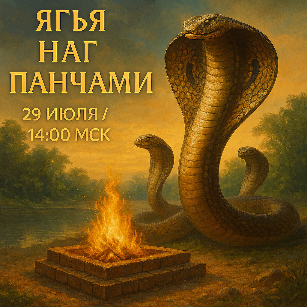 Дорогие друзья! Только что мы получили подтверждение от браминов и рады пригласить вас присоединиться к огненной церемонии в день Наг Панчами — особого праздника, посвящённого На́гам — божественным змеям, хранителям глубинной силы, родовой памяти и сакральных знаний 🐍 🔥 Почему это важно: Наги — мистические сущности, связанные с подземным миром, водой и энергией кундалини. Считается, что они оберегают род, указывают путь освобождения и охраняют кармические узлы, которые не всегда можно осознать умом. В этот день особенно благоприятны практики: 🔹 очищения от кармических и родовых блоков 🔹 исцеления хронических, «необъяснимых» болезней 🔹 работы с фобиями, страхами, тревожностью 🔹 освобождения от повторяющихся несчастий 🔹 гармонизации Раху, Кету, Венеры и Луны в натальной карте 🌕 Ягья поможет вам: — получить энергетическую защиту рода — освободиться от старых страхов и кармы, передающейся по роду — усилить связь с интуицией, тонкими мирами и глубинной энергией — получить благосл