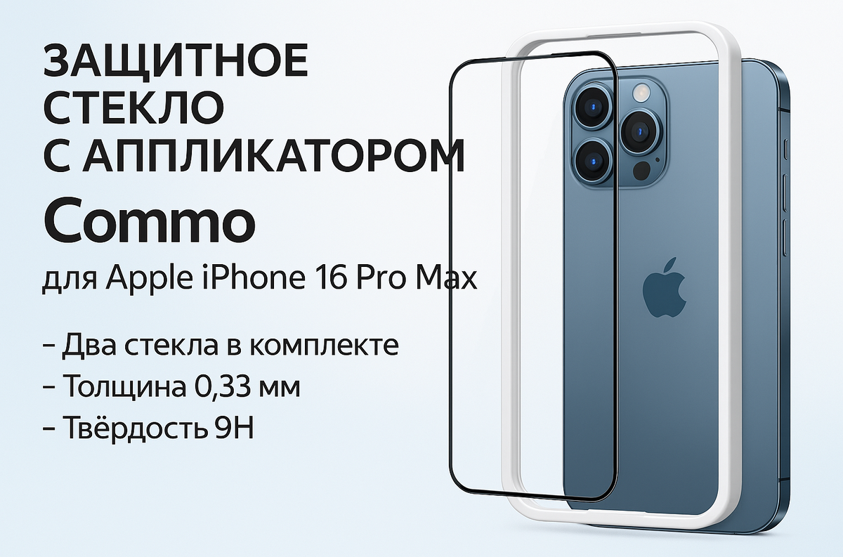 Защитное стекло Commo с аппликатором для Apple iPhone 16 Pro Max