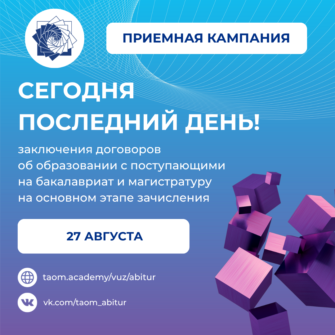 Сегодня последний день заключения договоров об образовании с поступающими на бакалавриат и магистратуру на основном этапе зачисления