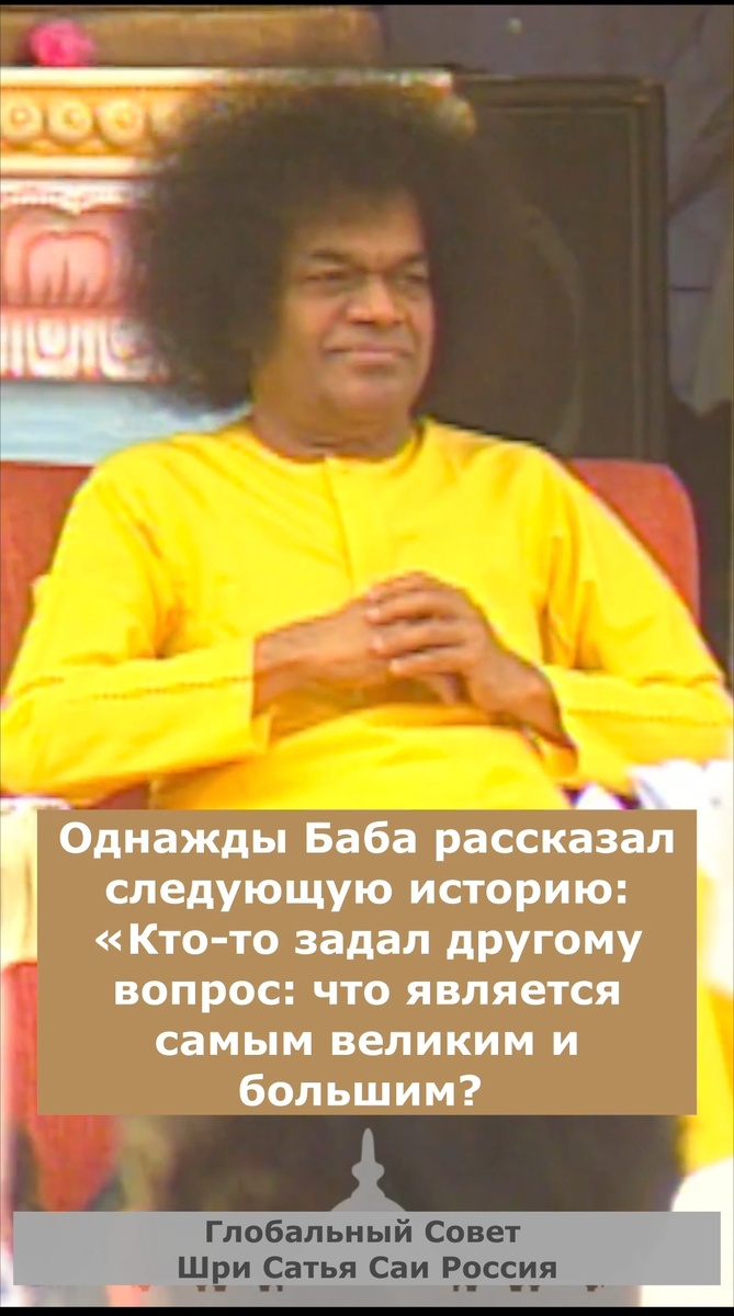 108 имён Шри Сатья Саи Бабы К 100-летию Бхагавана мы продолжаем воспевать 108 имён Шри Сатья Саи Бабы! 71. Ом Шрӣ Сāи Бхактаджана Хридайāлайāйа Намаха Однажды Баба рассказал следующую историю: «Кто-то задал другому вопрос: что является самым великим и большим? Ответ был следующий. Земля, но две трети её занимает море; море осушается солнцем; солнце – всего лишь светило в небе, а небо – всего лишь шаг для Бога, проявившегося как Тривикрама: Тривикрама, или Господь, пребывает в сердце Бхакты. Итак, самое великое и большое – это сердце Бхакты». Это Āлайа (обитель) Бабы. Баба говорит, что если вы хотите узнать адрес Господа, обратитесь к 61-му стиху 18-й главы «Бхагавад-гиты». «Ӣшварах Сарва Бхӯтāнāм Хриддеше Арджуна Тиштхати». «Господь пребывает в сердцах всех Существ, о Арджуна: ищи и ты найдешь Его там – в своём собственном сердце». «Я Кшетраджна в каждой Кшетре; Я ведающий всё, что следует знать». Поэтому Баба однажды заявил на телугу: «Андарилону Саи Уннааду» –
