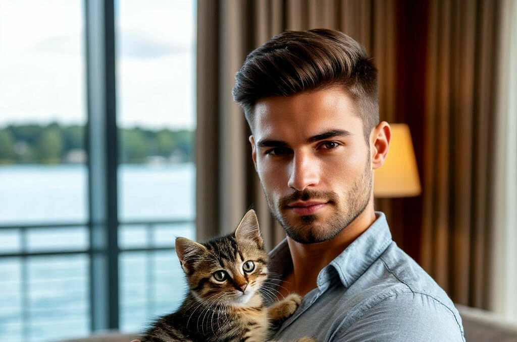 - И кому это, кроме вас, не спится? Открыто. - Сказал Ярослав и Юля зашла к нему. Он стоял возле кровати в одних шортах, держа одного котёнка на руках, а второй нападал на его ногу и игрался с пальцами. Третий котёнок кувыркался на кровати, играясь со своим собственным хвостом.
