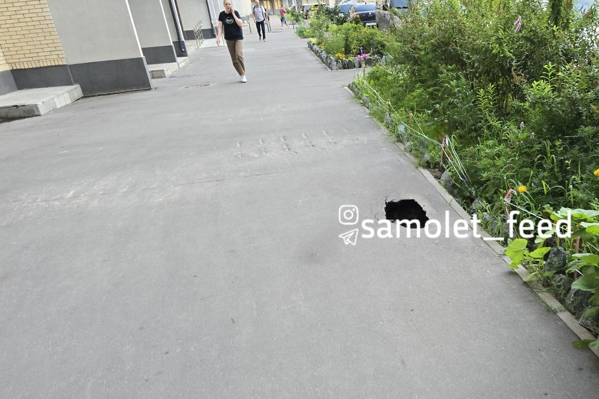 Около 11 подъезда на Камова 5 к.2 провалился асфальт.