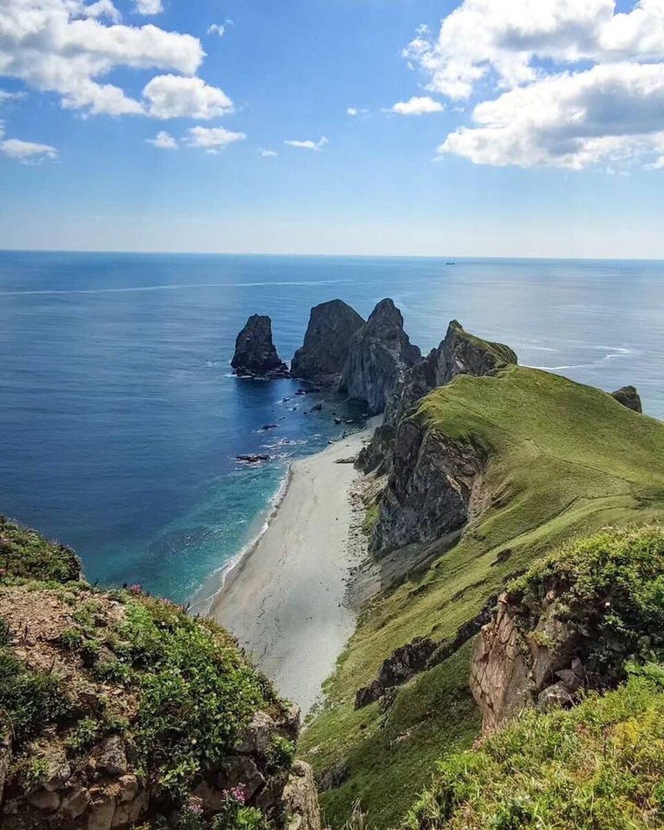 В Ольгинском районе Приморского края, на побережье Японского моря, находится уникальное природное образование — мыс Четырёх скал. Это место привлекает туристов и исследователей своей необычной красотой, богатой историей и удивительным ландшафтом, который словно создан самой природой для вдохновения и созерцания. Название мыса говорит само за себя: четыре внушительных скалы, стоящие как воины на страже берега. Эти массивные каменные образования словно вырисованы контуром, отделяющим сушу от морской стихии. Каждая из них имеет свою неповторимую форму и характер, которые становятся особенно живыми на рассвете и закате, когда игра света и теней создаёт волшебные композиции. Часто туристы при подходе к бухте задаются вопросом: почему скалы всего три? Все просто — мыс, ограничивающий вход в бухту с левой стороны, показывает только три вершины. Но если спуститься на 130 метров, то можно увидеть все четыре части. Мыс Четырёх скал — это результат многовековой работы природных стихий — ветра, во