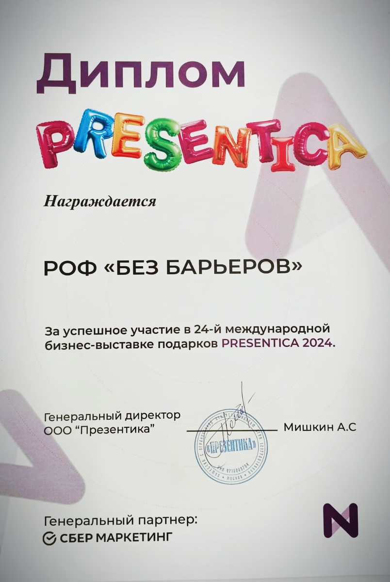 #Мастера_безбарьеров участвовали в международной выставке подарков «PRESENTICA» на протяжении нескольких лет. И вот, наконец-то, нас нашел Диплом участника. Пусть и прошлого года.