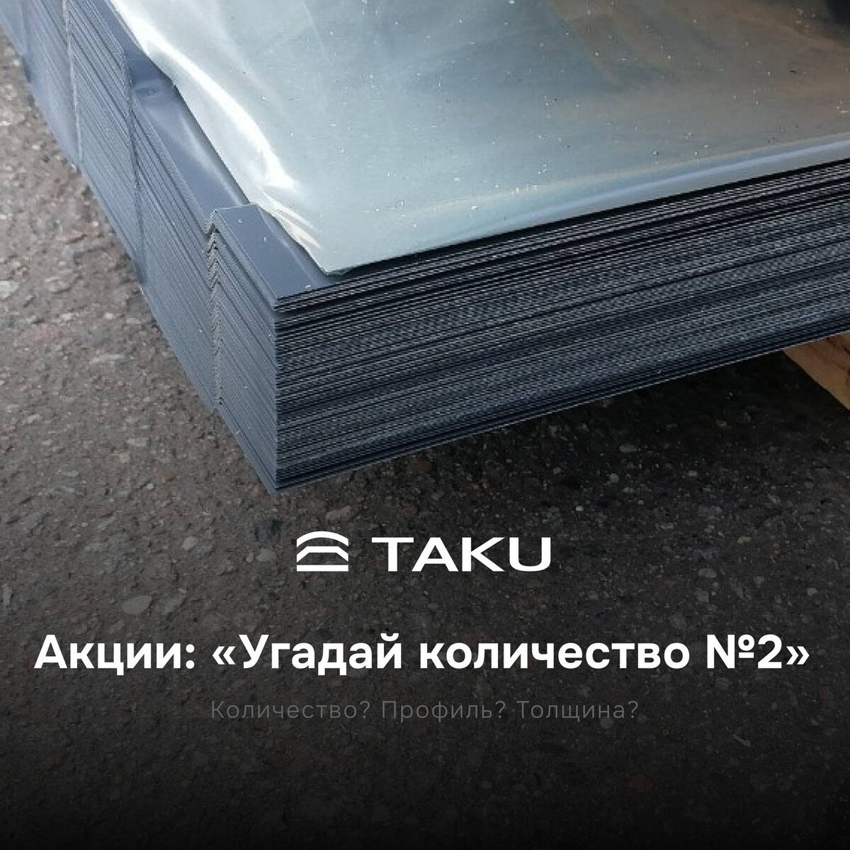 Угадай количество и получи скидку! ⚡️ Друзья, запускаем акцию для подписчиков — «Угадай количество №2» Всё просто: смотрите на фото, прикидывайте глазом и пишите свой вариант! 🔎 Что нужно угадать? 1. Количество листов и/или; 2. Тип профиля и/или; 3. Толщину металла. ❗️Важно: можно указать один, два или все три параметра, но засчитывается только один ответ. ❗️Но будьте внимательны: если ошиблись хоть в одном параметре — весь ответ считается неверным. Чтобы повысить свои шансы на победу - указывайте меньше параметров в одном ответе, но тогда и приз будет меньше. ⭐️ Бонусы за точность: Угадали 1 параметр — скидка 1 000₽; Угадали 2 параметра — скидка 2 000₽; Угадали 3 параметра — скидка 5 000₽. 🏆Такого ещё не было! Если вы угадали все три параметра — Вы получаете бесплатный набор из трёх маркеров по металлу с выбранными вами RAL-цветами. 📌Мы передадим его вместе с вашим следующим заказом. Чем больше параметров указываете, тем больше скидка, но и выше вероятность ошибки! 📌 Ус
