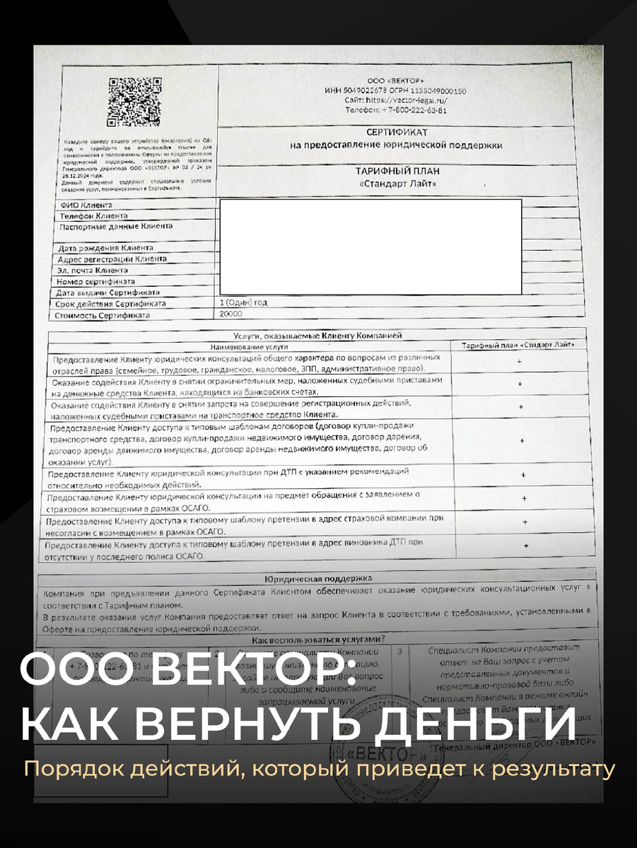 Услуга оформляется путем подписания заявления на присоединение к оферте на предоставление юридической поддержки, а также выдается соответствующий сертификат.