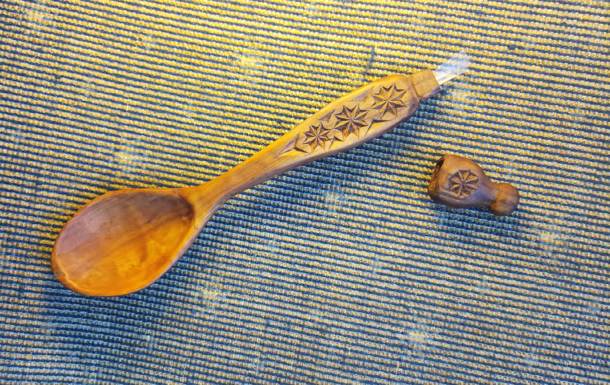 Текст целиком и полностью написан исключительно автором данного блога. Все изделия, приведённые рисунки и фотографии выполнены автором. Пост не содержит никакой запрещенной, или ограниченного пользования, информации. Пост касается исключительно описания процесса работы с деревом и изготовления из него различных полезных предметов. Данный пост является изложением исключительно собственного мнения и опыта работы, не является услугами по просветительской деятельности и не подлежит лицензированию в соответствии с Федеральным законом «Об образовании». Читаем медленно и вдумчиво, не забываем дочитывать текст до конца! Будьте здоровы и хорошего всем настроения! В предыдущий раз я описал свой первый опыт по изготовлению деревянной ложки из древесины груши. Точнее сказать это была не ложка, а комбайн – гибрид ложки с вилкой, ложковилка. В этот раз я решил продолжить свою работу с древесиной груши и сделать ещё одну ложку. Правда не совсем обычную. В предыдущей публикации я рассказал про изготов