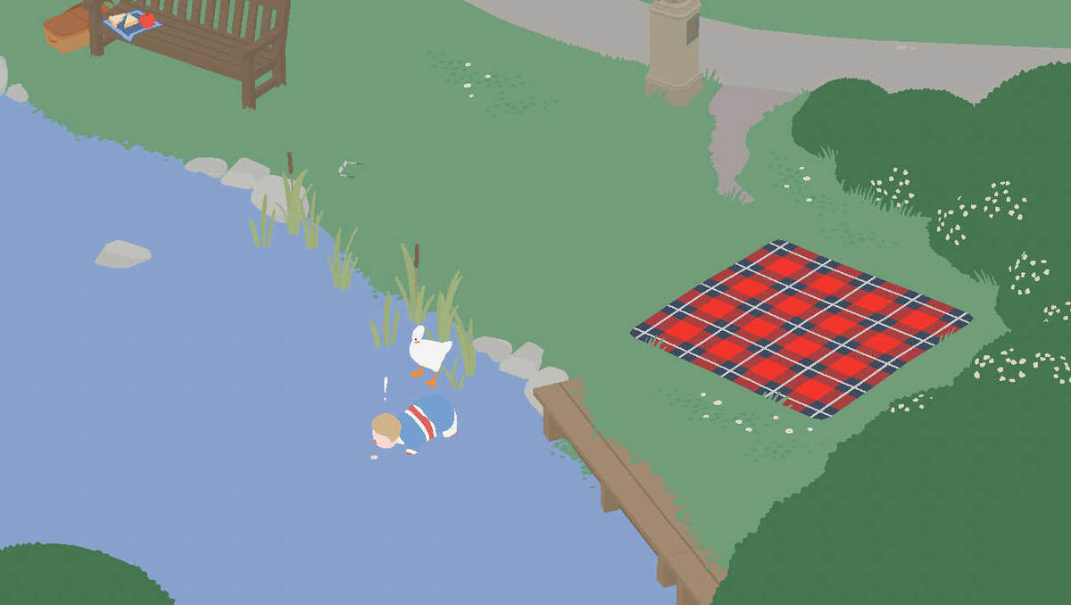 КАРТИНЫ ИЗ ИГРЫ UNITLED GOOSE GAME УЖЕ ЗДЕСЬ НА 1 КАРТИНЕ ГУСЬ СЕЛ НА СОПЛЯКА ВСЁ О КАРТИНЕ 2