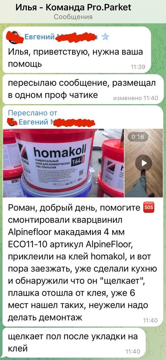 ⚠️ Только что приклеенный кварцвинил стал отклеиваться! Кто догадается почему?) (достаточно просто быть внимательным; никаких дополнительных вводных данных кроме этого обращения у меня нет) Мне понадобилось всего 5 секунд, чтобы понять, что тут не так и с уверенностью утверждать, что он и дальше продолжит отклеиваться. 👀 Есть тут внимательные?) Подсказка! Прораб, который это учудил, говорит заказчику, что прокачает эти отслоения клея 😂. Я утверждаю, что это не поможет) ✅ ОТВЕЧАЮ Как я уже сказал, чтобы ответить на этот вопрос достаточно просто быть внимательным. На фотографии клей Homakoll 164, крупная надпись орёт “КЛЕЙ ДЛЯ ПВХ-ПОКРЫТИЙ” Из обращения клиента видим, что на него приклеили КВАРЦВИНИЛ. Исполнители выбрали абсолютно не предназначенный для данного напольного покрытия клей. Поэтому я и говорю, что прокачка мест, где плашки отслоились от клея, тут не поможет. Кварцвинил и дальше продолжит отклеиваться. Более того! Скорее всего раз ума хватило (в кавычках) клеить