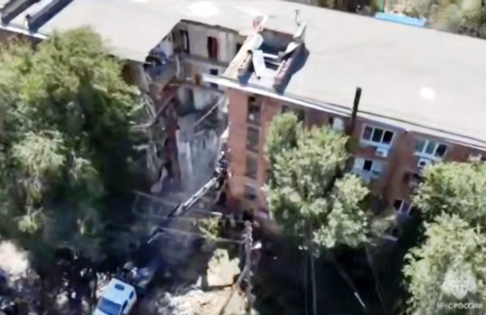 Разрушенный дом в Астрахани обследуют дроны и кинологические расчеты
