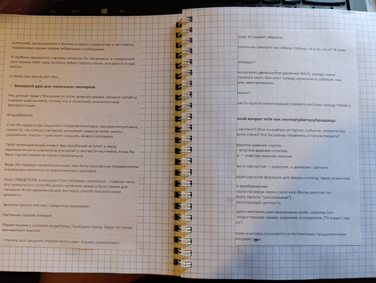 КАК Я ПОБЕДИЛА ВНУТРЕННЮЮ ОТЛИЧНИЦУ [терпеть не могу отличниц] (ВСЕГО ОДНОЙ СТРАНИЦЕЙ) Сегодня я нарушила почти все правила хорошей девочки. И заодно — почти все инструкции по технике безопасности перфекциониста. Я распечатала себе очередную умную книжку в PDF — ну как книжку… сокровище, клад, волшебный манускрипт. Как всегда, в уменьшенном масштабе, чтобы разрезать и аккуратно вклеить в тетрадку. Мне так проще работать — читаю с бумаги, а если что надо скопировать, всегда есть файл на компьютере. И вот я, довольная, разрезаю, клею, прикладываю, и тут — бац. Промах. Принтер напакостил, и я одним движением оттяпала начало страницы. Две-три первых буквы просто… исчезли. Положила страничку в сторону. Думаю: потом переделаю. Надо же красиво. Целостно. Читаемо. Как положено. А потом сижу и думаю: А зачем? Текст понятен. Смысл я уловила. Ничего критического не потеряно. Но мой внутренний контролёр шепчет: "Неправильно. Надо переделать. Надо идеальн! Это же некрасиво…" И вот тут я сов