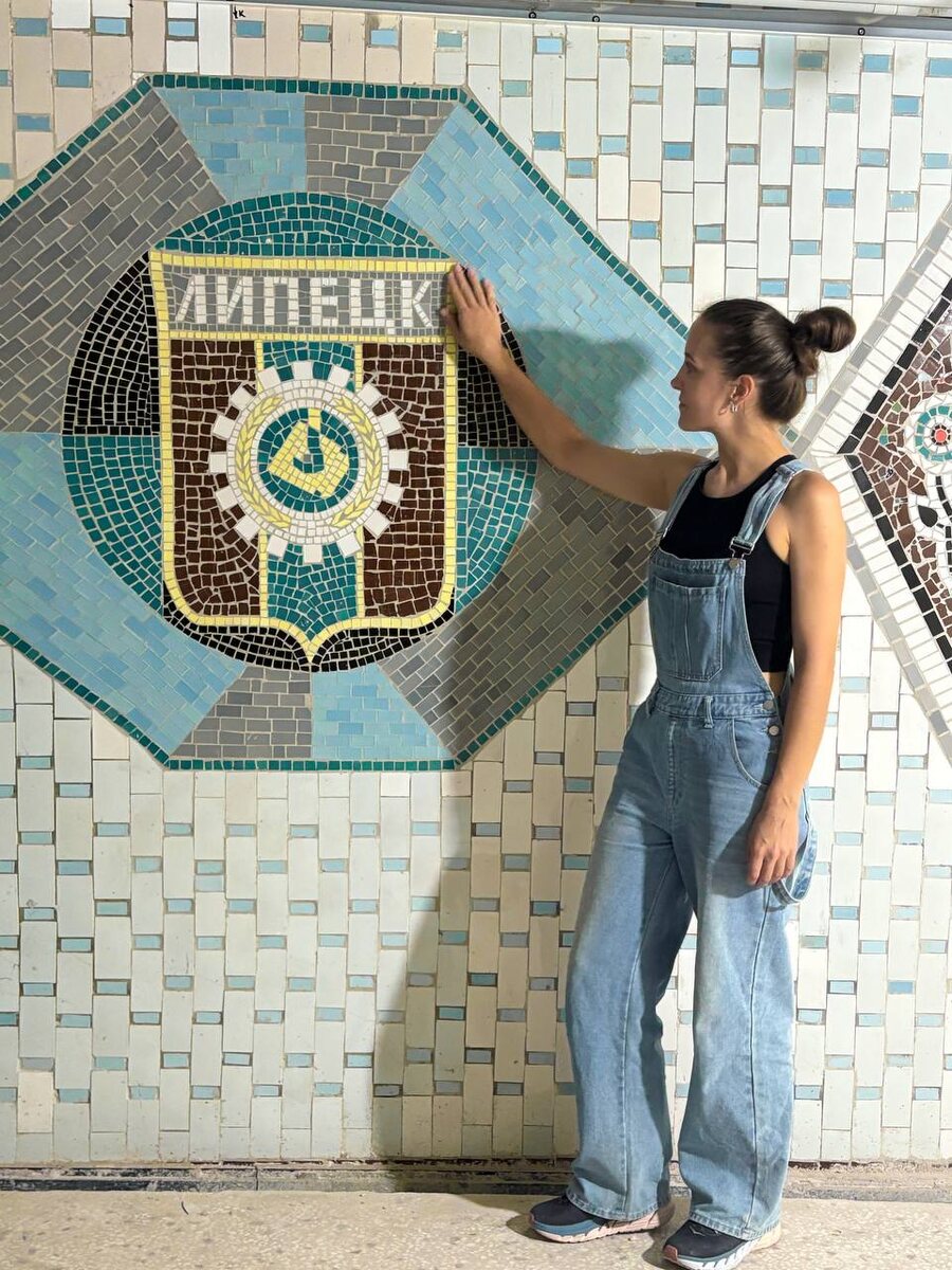 Моя работа началась с подбора материалов. Часть керамической плитки была изготовлена на нашем производстве в Ульяновске по оригинальным фрагментам, которые мы изъяли при обследовании. Ещё часть материала я разыскивала отдельно — удалось найти оригинальную плитку времён СССР. Некоторые цвета и форматы совпали настолько точно, что казалось, будто они созданы специально для этой мозаики. После того как все материалы оказались в наличии, мы выехали в Липецк. К тому времени большая часть инженерных и конструктивных задач уже была решена.