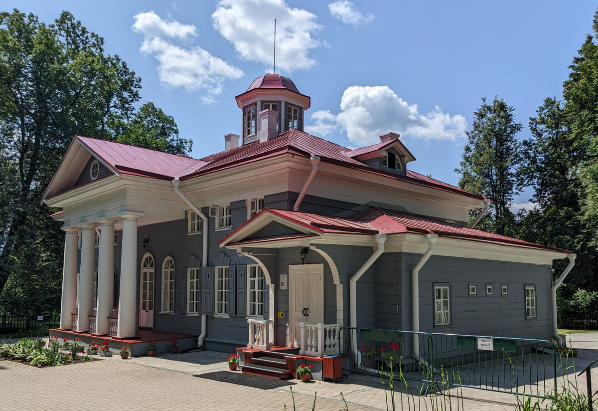 Точнее, это как минимум третья инкарнация этого дома. 1999 года постройки. Вторая инкарнация была построена в начале XX века и сгорела в 1993 году. Возможно, что после 1812 года дом тоже приходилось восстанавливать или возводить заново, ибо в нём располагался отряд наполеоновских войск. Не знаю, насколько легко было их из этого дома выкуривать. Первая инкарнация известна в том числе тем, что в ней тусил Пушкин в детстве. Ибо Захаровым с 1804 по 1811 год владела бабка Пушкина Мария Алекссевна Ганнибал. Как вам домик?
