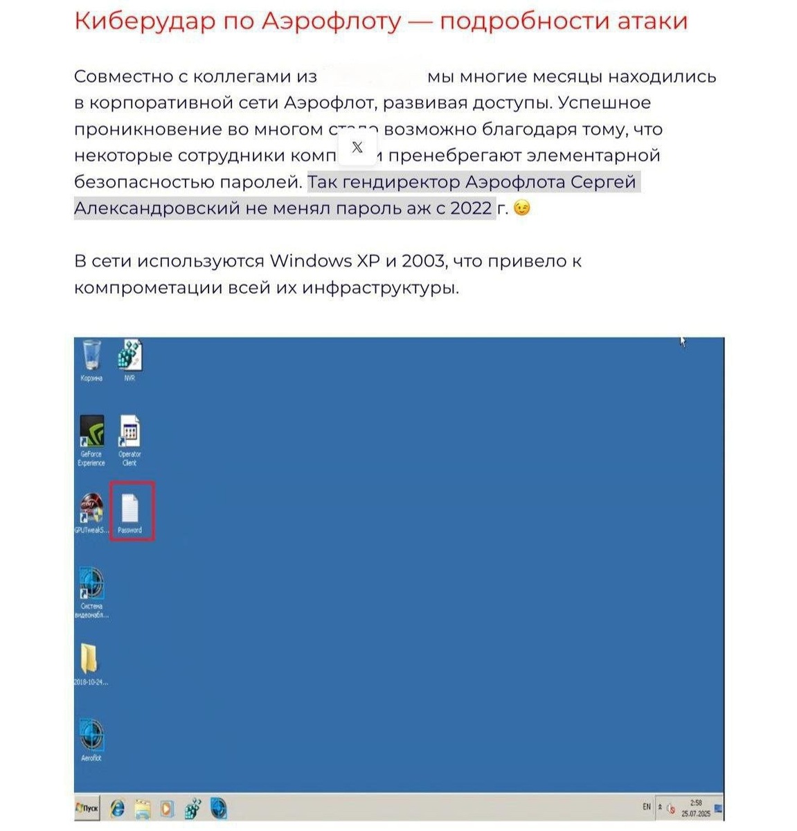 Кибербезопасность по-нашему: когда пароль в стиле «12345» — надёжнее банковской ячейки. Гендиректор Аэрофлота решил, что менять секретный код раз в три года — верх прогресса. Итог известен: хакеры вошли в систему, как в свой дом, даже не запылили ноги. Группа взломщиков ещё и подтвердила: в Аэрофлоте до сих пор в ходу Windows XP, а некоторых сотрудников просьба сменить пароль сильно обижала. Видимо, главная страховка — это коллективное равнодушие. Эволюция безопасности по-российски: дверь нараспашку, главное — не изнашивать петли. 🚪💻