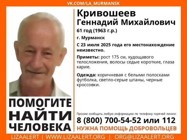 ❗️В Мурманске пропал Геннадий Кривошеев