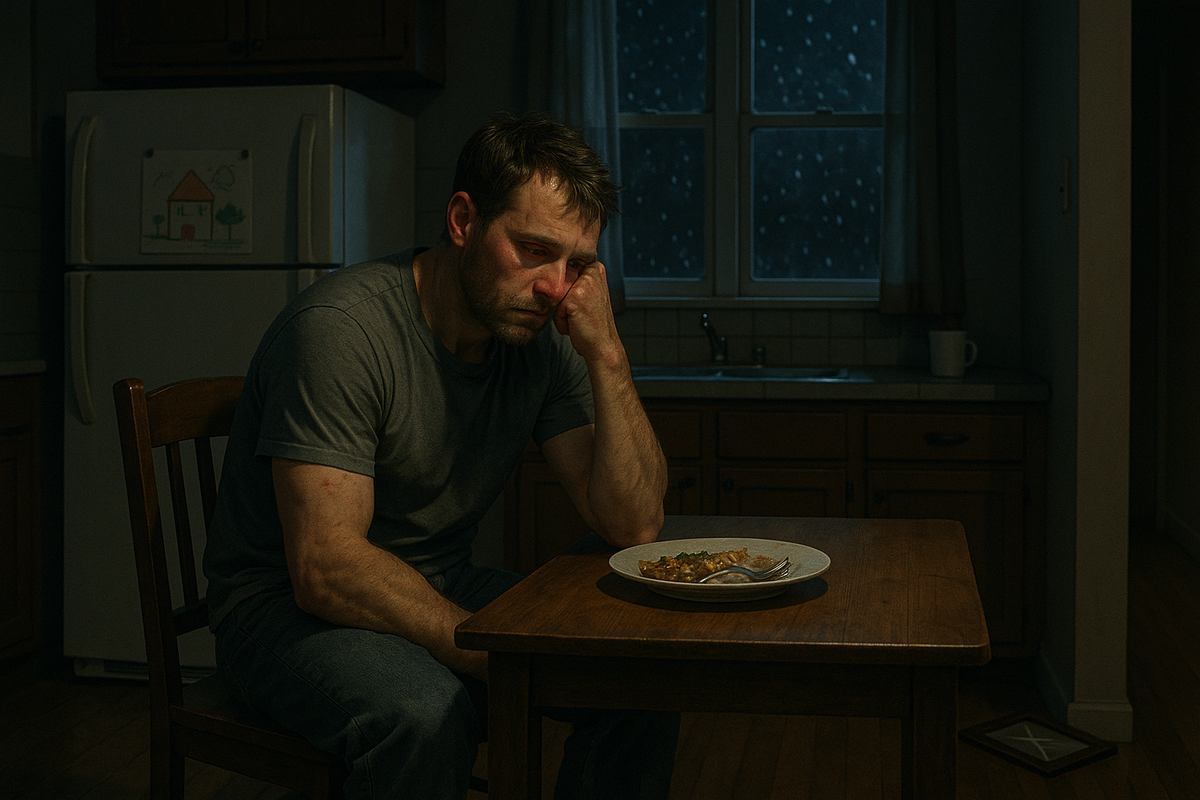 Я сначала застыл. Потом медленно пошёл, оглянулся. На кухне никого — чашки, тарелки, коробка пиццы.