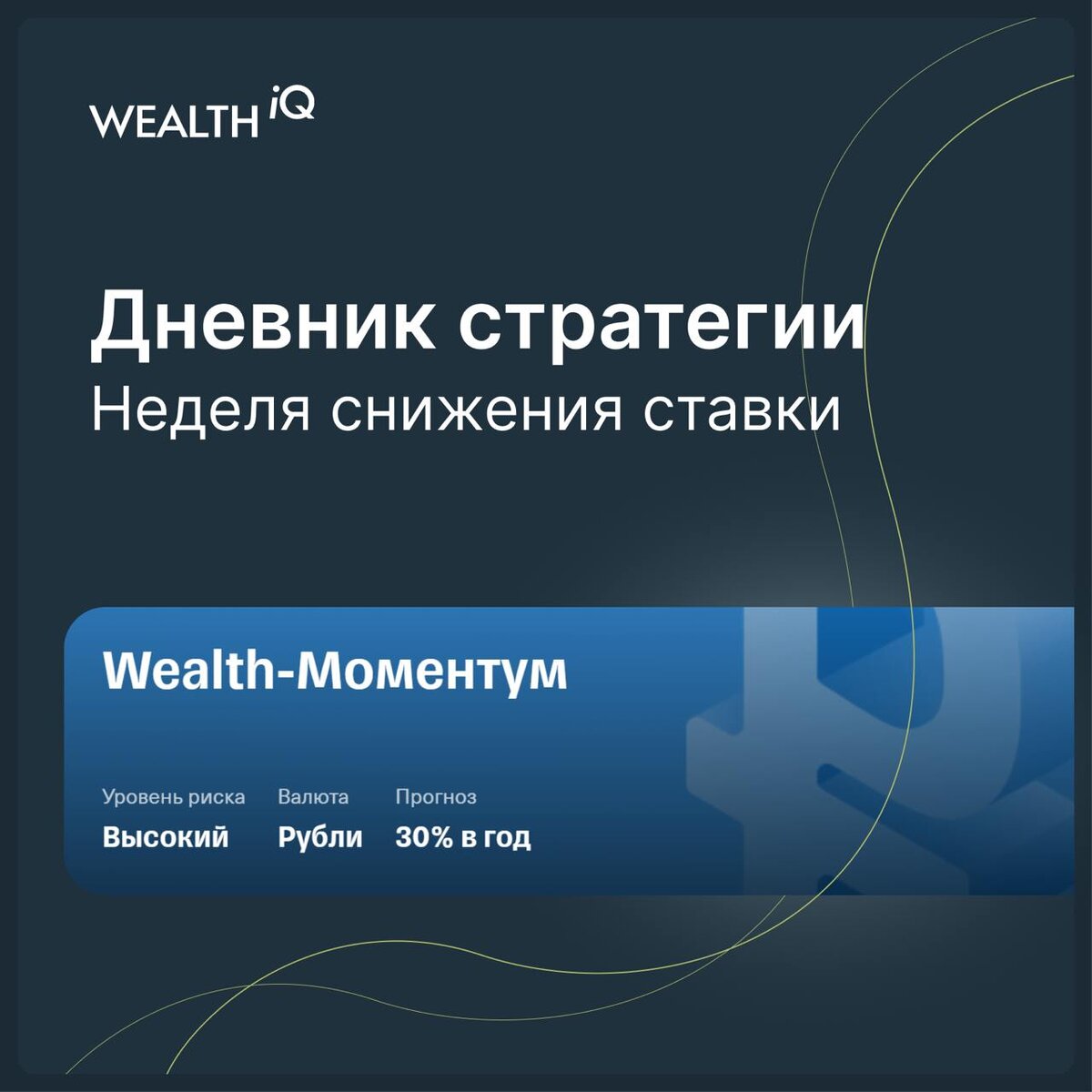 ↗️ Дневник стратегии. Неделя снижения ставки 💬 Кирилл Терещенко, руководитель направления по развитию инвестиционных продуктов На прошлой неделе индекс Мосбиржи немного скорректировался: минус 0,4%. Снижение ключевой ставки сразу на 200 б. п. не стало неожиданностью: рынок заложил это решение в цены заранее. Поэтому реакция была скорее технической — фиксация и небольшая переоценка риска. Портфель просел чуть сильнее рынка, на 1,2%, но уже в понедельник стал отыгрывать: плюс 0,5% в моменте. Что поменяли в портфеле? В понедельник на открытии основной сессии мы сделали плановую ребалансировку. Добавили немного в CBOM, RTKM и VKCO. По MDMG, наоборот, частично зафиксировали прибыль. Что дальше? Смотрим на рынок умеренно оптимистично. Смягчающаяся денежно-кредитная политика — это плюс для акций. В ближайшие пару недель в рынок может вернуться часть средств, полученных инвесторами через дивиденды, что может придать дополнительный импульс. #стратегии 🏦 @wealth_iqs
