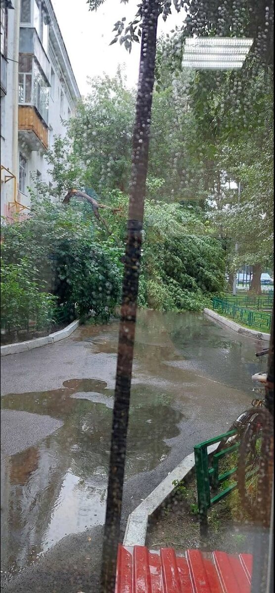 Во дворе дома 65 по улице Ленина упало дерево. Дерево намокло от дождя и переломилось