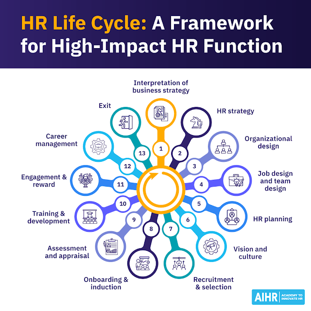 Жизненный цикл HR включает 13 этапов. Давайте подробно рассмотрим их и рассмотрим, как они взаимодействуют друг с другом.