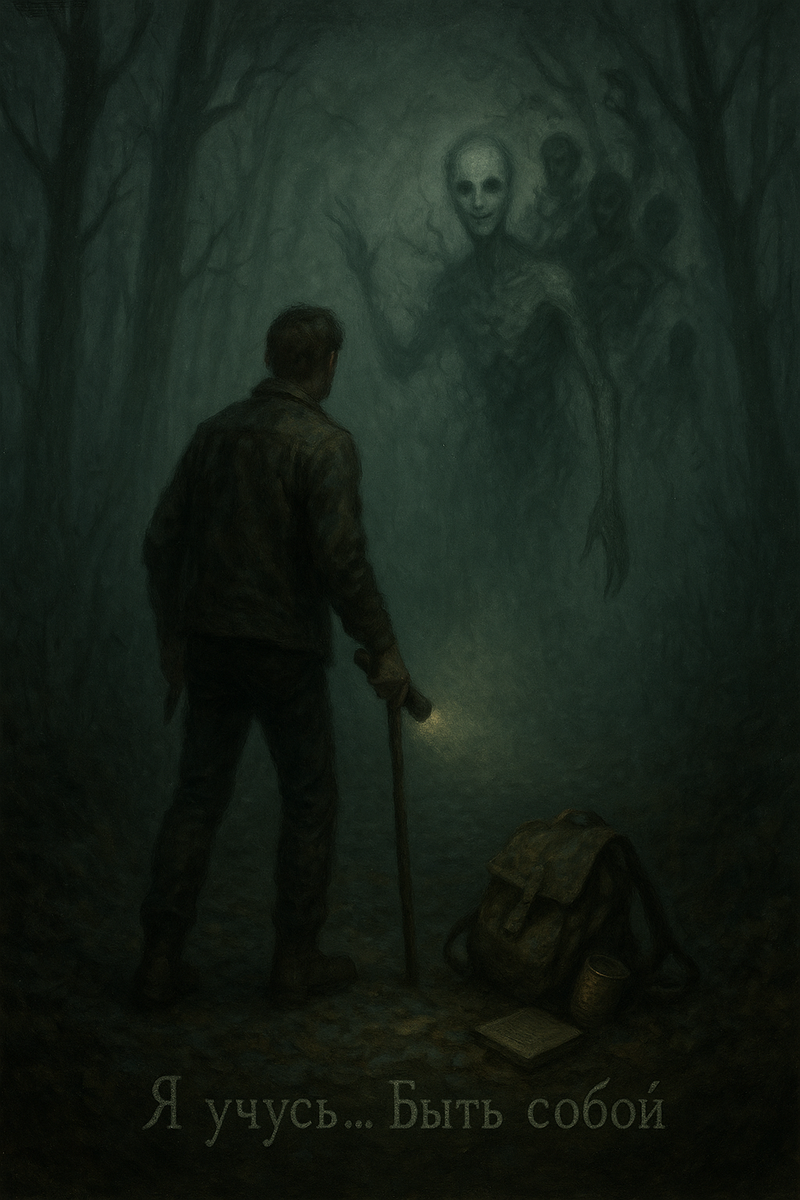 Сердце забилось быстрее, а лес вокруг ожил — шорохи, скрипы, шёпоты. Тени сгущались и принимали странные формы — то люди, то звери. Они смотрели на меня своими пустыми глазами.