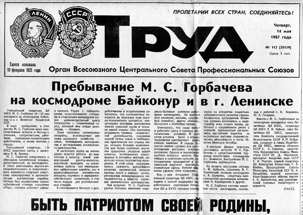 Что писала газета "Труд" 14 мая 1987 года.