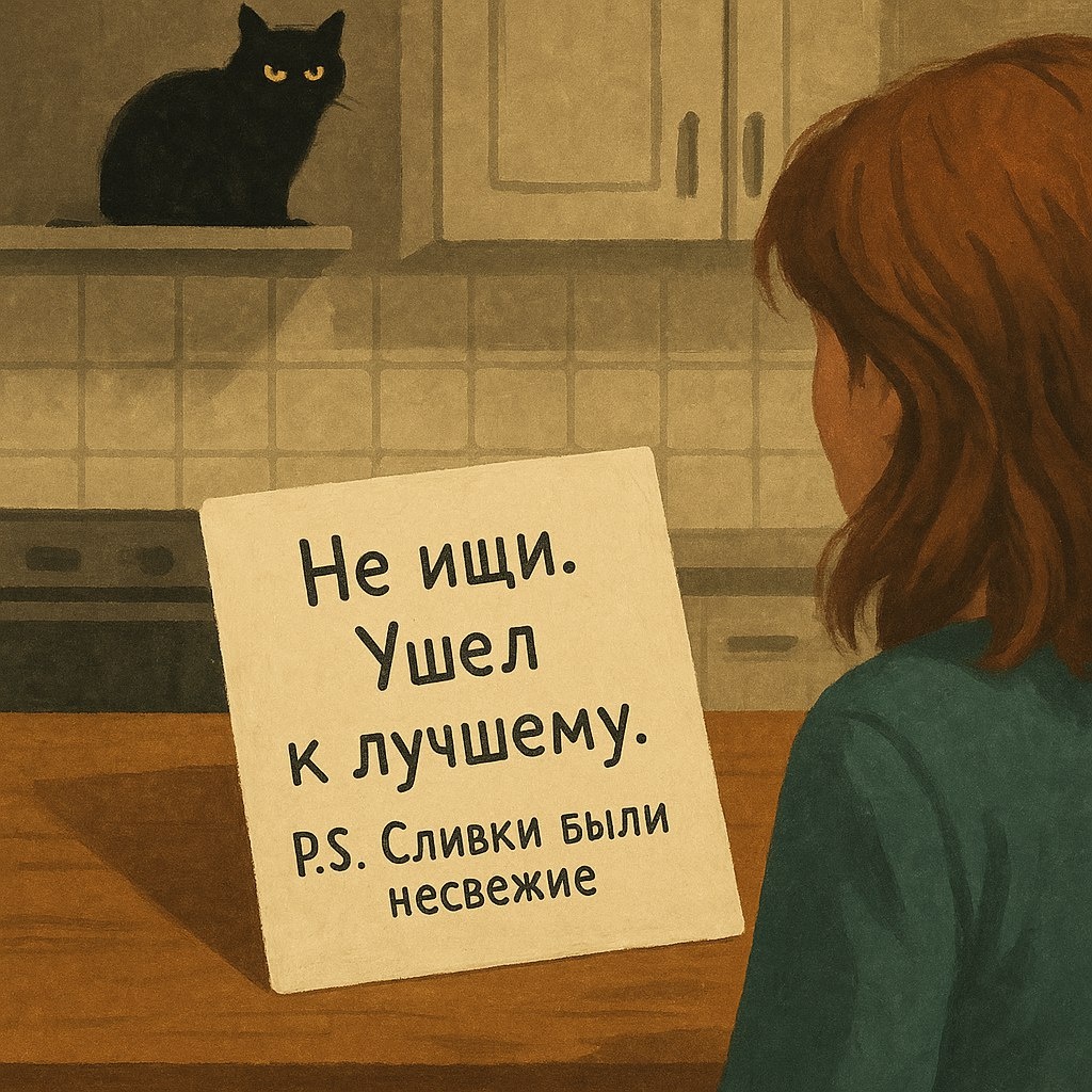 Утро началось, как обычно: будильник орал так, будто ему лично кто-то наступил на хвост, кошка Муська смотрела на меня с высоты шкафа, как на последнюю дуру, а в голове крутилась мысль: «Зачем я вчера съела весь торт?» Но сегодня было хуже. Гораздо хуже. Потому что, когда я наконец выползла из-под одеяла, на кухне меня ждал сюрприз. Не тот, который дарят на день рождения. А тот, от которого хочется вернуться в кровать и притвориться, что ничего не было. Мой торт — «Наполеон», который я пекла три часа, не считая слёз и сожалений о том, что не пошла в спортзал, — исчез. Нет, не съела. Не упала. Не унесла соседка по лестничной клетке, которая, по слухам, уже третий раз пытается меня отравить (потому что я слишком громко слушаю Диму Билана). Торт исчез бесследно. Как будто его и не было. Только на столе лежала записка: «Не ищи. Ушел к лучшему.