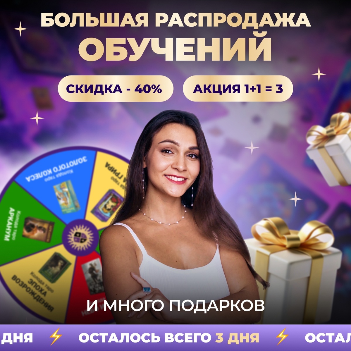 Когда вы можете приобрести наши обучения со скидкой 40%! И сегодня я подготовила для вас новый подарок🎁⬇️ Те, кто приобретет обучение сегодня – получит наш мастер-класс: ❤️🔥 Как делать расклады на любовь и отношения? 5.900₽ → бесплатно!🎁 На этом мастер-классе вы научитесь: ✅ читать любовные расклады на классической колоде Таро Уэйта ✅ работать с нуля с колодой Манара и смотреть все интересующие темы любви и отношений ✅ делать расклады: вокзал для двоих, на причины одиночества и как гармонизировать отношения 🎁 + вы получите файл «Пошаговая инструкция. Как продавать расклады в Stories и Reels?» Любовь и отношения – это самые частые запросы, с которыми к вам будут обращаться клиенты. И этот мастер-класс поможет сделать ваши любовные расклады ещё глубже и информативнее❤️🔥 И на всех наших обучениях вы получаете: 🪄 структурные знания 🔥 огромное количество практики 🫂 ценнейшую обратную связь от наших кураторов И когда вам дают все инструменты – вы быстрее достигаете результата, у ва