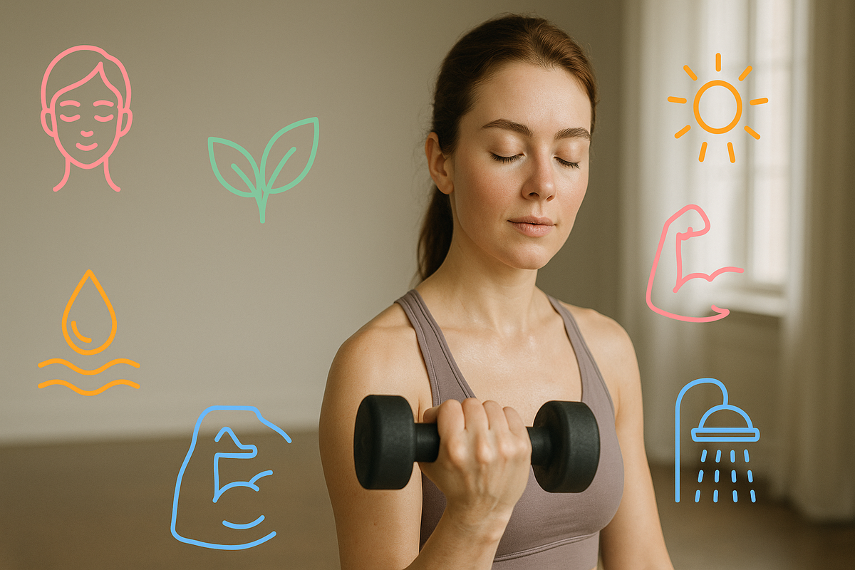 В предыдущих статьях я уже делилась тем, что моим первым шагом в заботе о себе стала грудь — внимание, уход, прикосновение. Но, как это часто бывает, когда ты начинаешь слышать своё тело, оно подсказывает, где ещё нужна забота. 🔍 Меня начало беспокоить лицо по утрам — отёчное, уставшее, с тяжёлым взглядом. А тело? Казалось, что в нём скапливается лишняя вода, особенно к вечеру. Я поняла: второй шаг — избавиться от отёков, дать себе ощущение лёгкости, простора, текучести. 📌 Почему возникают отёки? Причины могут быть разными, у меня их оказалось несколько: Я не стала сразу всё вычищать из жизни, а начала мягко вводить новые полезные привычки, которые действительно работают. 💆♀️ Что мне помогло? 1. Массаж лица и фейсбилдинг Каждое утро — 10–15 минут перед зеркалом. Использую охлаждённое масло, добавляю лёгкие упражнения для щёк, шеи, зоны под глазами. Уже через неделю увидела разницу — лицо стало свежее, рельефнее, взгляд открылся. 2. Полноценные тренировки утром Я ввела в свою жиз
