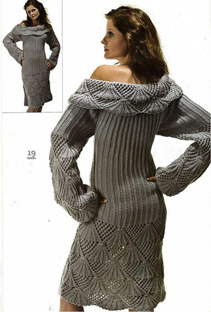 Серое платье вязаное спицами