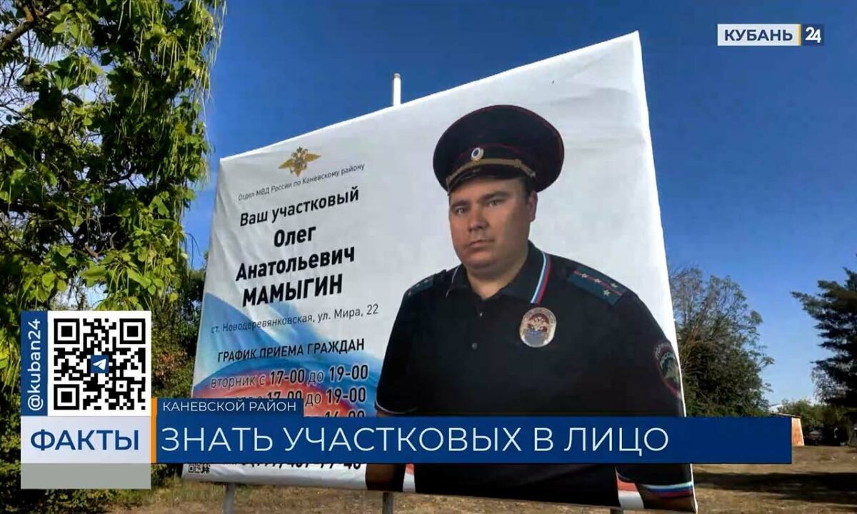 Видео канала «Кубань 24» «Здесь могла бы быть ваша реклама, но нет — это место принадлежит другому. Такой огромной визитки точно нет ни у кого — должность, телефон и место работы — участковый уполномоченный полиции», — сообщает специальный корреспондент телеканала «Кубань 24» Мария Николаева. Больше 10 баннеров появились на улицах Каневского района. Участковые пока не привыкли к такой рекламе. «Стеснительно, наверное, быть таком баннере, знать, что вся станица на тебя смотрит», — делится старший участковый уполномоченный отдела МВД России по Каневскому району Юлия Симонова. Баннеры разместили на тех участках, которые закреплены за сотрудником полиции. На одного участкового полагается более 2 тыс. жителей. На прием звонков один сотрудник работает, как целый колл-центр. «Не досаждают, чаще стали поступать звонки. Самые популярные вызовы — семейно-бытовые конфликты, перепалки между соседями, громко играющая музыка», — говорит участковый уполномоченный полиции отдела МВД России по Каневско