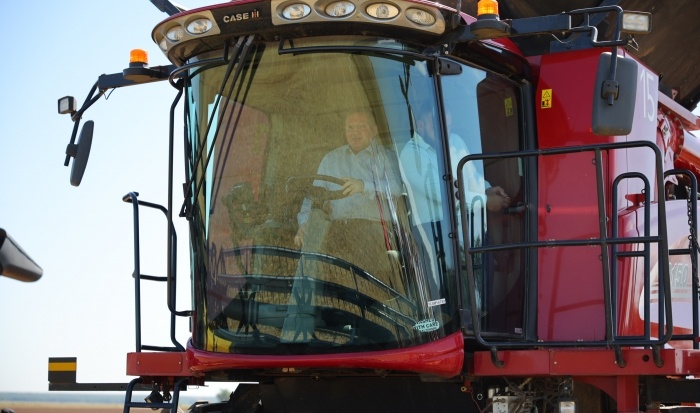 Андрей Бочаров сел за руль комбайна в поле под Волгоградом