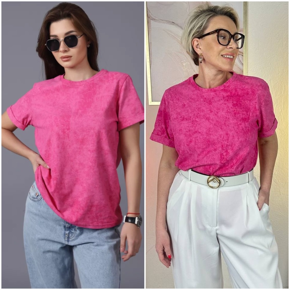 Здравствуйте, дорогие читатели! Меня зовут Ирина, я - стилист, и на этом канале показываю одежду и аксессуары с Wildberries такими, как они есть, то есть, из серии "ожидание/реальность". Мои параметры: рост 169 см, вес 67 кг, 94-74-100 ✅Основной канал: Стильно - не значит дорого! Ставьте лайк в поддержку канала, и давайте смотреть на мою сегодняшнюю покупку. Эта модная футболка с вареным эффектом сразу привлекла меня сочным оттенком фуксии. На свои параметры взяла размер 50, посадка оказалась идеальной для свободного кроя. Особенности модели: Практические наблюдения: Кому подойдет: Важно: Итог: Отличный вариант для создания модного casual-образа. Футболка хорошо комбинируется с джинсами, шортами, брюками и даже юбками. Качество пошива достойное, особенно учитывая демократичную цену. Если вам нужен артикул футболки, ставьте + в комментарии, всем отвечу. "Почему вы не можете сразу дать артикул, зачем эти плюсы?" Немаркированная реклама ЗАПРЕЩЕНА. Артикул - это тоже реклама. Ставим вердик