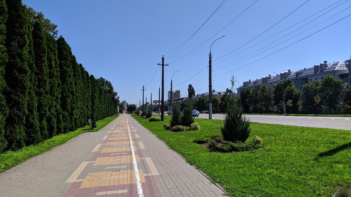 Перехожу улицу Ленина в сторону Верхнего парка. По центру фото видно немного Кафедральный собор Рождества Христова.