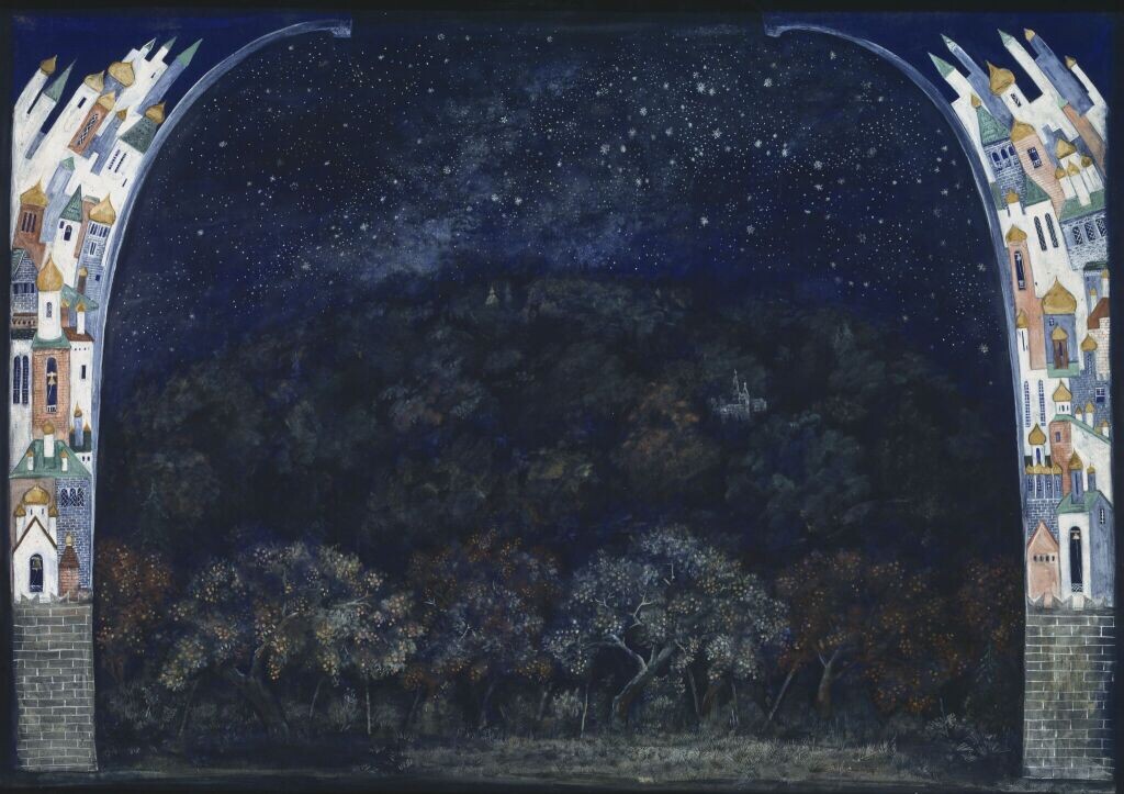 Снова горят и говорят С небом огни вечерние. Ты у меня. Я у тебя. Мы друг у друга первые. Руку мне дай. Звёздная даль Нам у порога брошена. Ни у тебя, ни у меня Нет никакого прошлого. До самых дальних седых вершин Звёзды нам путь усеяли. Ни ты, ни я никуда не спешим И не следим за временем. Н. С Гончарова «НОЧЬ». 1926 г. Государственная Третьяковская Галерея