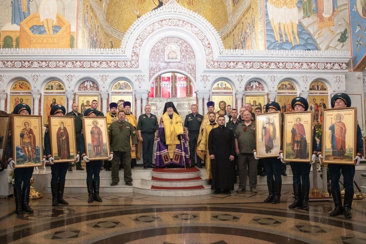 По поручению директора Росгвардии Героя России генерала армии Виктора Золотова заместители главы ведомства генерал-полковник Владислав Ершов и генерал-полковник Алексей Воробьев в торжественной обстановке передали в главный храм войск национальной гвардии иконы небесных покровителей отрядов специального назначения и поздравили прихожан с Днем крещения Руси. По случаю прибытия икон и в честь Дня крещения Руси в главном храме Росгвардии состоялся праздничный молебен, посвященный небесному покровителю войск национальной гвардии – Святому равноапостольному князю Владимиру. Священнослужители и прихожане, в числе которых и воины-дзержинцы, помолились о здравии росгвардейцев, выполняющих служебно-боевые задачи в зоне специальной военной операции, зажгли свечи за упокой павших боевых товарищей и совершили крестный ход вокруг храма. Епископ Показать полностью... Подпишитесь на наши группы ВКонтакте, в Одноклассниках, в Телеграм - читайте, смотрите и комментируйте информационные материалы, пред