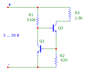 В предыдущей статье https://dzen.ru/a/aEu93WOmEkUk7eRH была рассмотрена схема генератора тока на двух транзисторах: В этой схеме ток смещения через резистор R1 зависит от напряжения питания, что вызывает изменение выходного тока через резистор нагрузки R3 и, как следствие, напряжения на нем на 0,3 В, при изменении входного напряжения от 5 до 50 В. Улучшить стабильность выходного тока можно применив стабилизатор напряжения смещения на транзисторе Q1, диоде D1 и резисторах R1, R2, R3. Такое усовершенствование схемы позволило добиться изменения выходного напряжения на 60 мВ, при тех же изменениях входного. Дальнейшее улучшение было достигнуто введением компенсационного резистора R6. Его сопротивление подбирается так, чтобы напряжение на выходе - на резисторе R5, при минимальном и максимальном входном напряжении, было одинаковым. В середине диапазона входных напряжений - при 27 В напряжение на выходе увеличивается всего на 15 мВ. Конечно, недостаток - потребление дополнительного тока ост