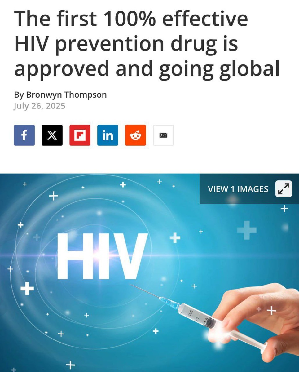 США официально победил ВИЧ. В продаже появилось первое в истории средство Yeztugo, обеспечивающее 99%-ю защиту от заболевания. Препарат нужно колоть дважды в год. Новое лекарство уже протестировано, одобрено FDA и продаётся в аптеках и медучреждениях. Где то на небе улыбнулся и заплакал Фредди Меркюри 😢. #безстраховки