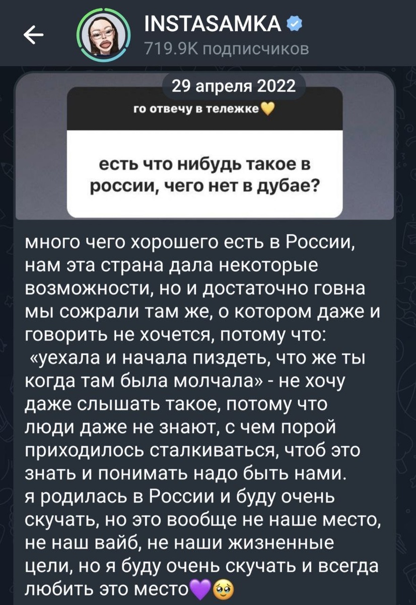 🗣Инстасамка решила не возвращаться в Россию ~ 29 апреля 2022 года «Это вообще не наше место, не наш вайб, не наши жизненные цели» #Инстасамка 🏛History_detail. Подписаться