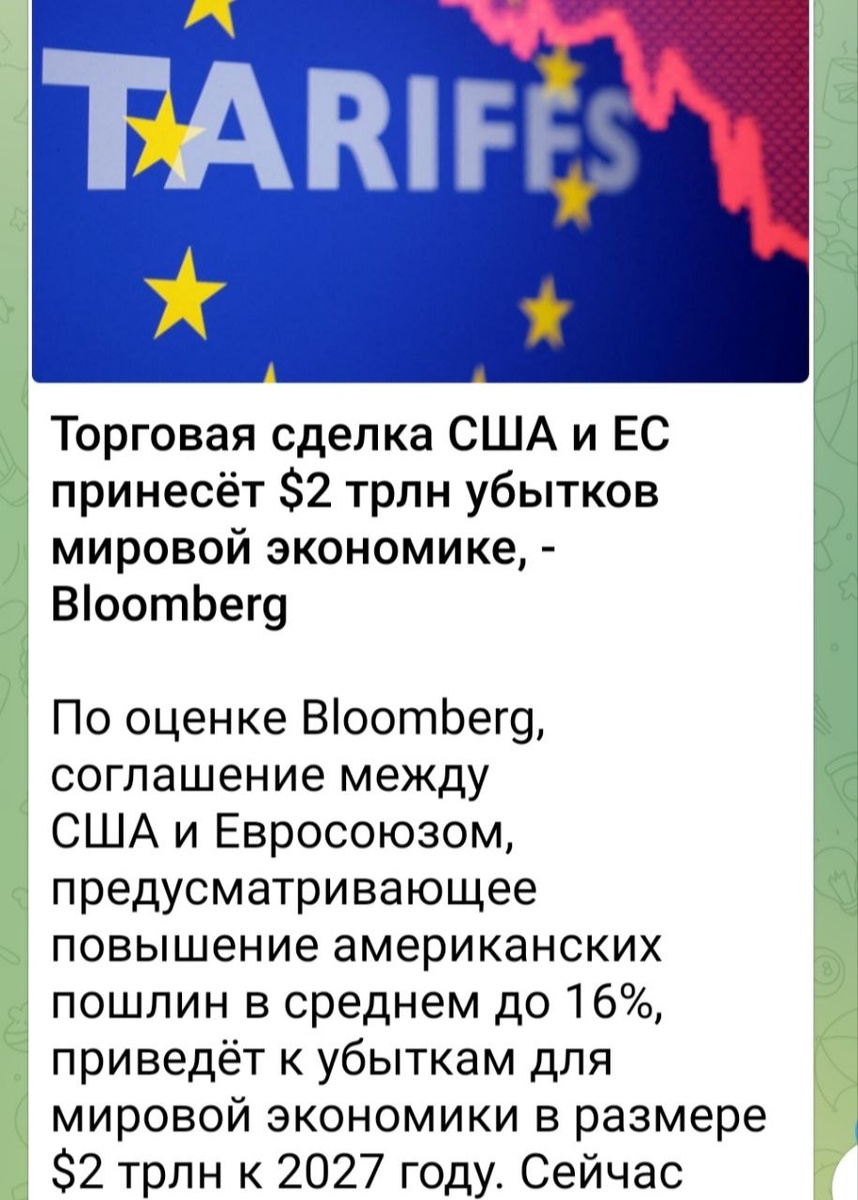 Если кто-то терпит убытки, то кто-то получает прибыль. В данном случае, пошлин и тарифов, её получат США. Но ведь речь и идёт об их рынке и нечего нам рассказывать, что потеряет "вся мировая экономика". Кто конкретно, фамилию?