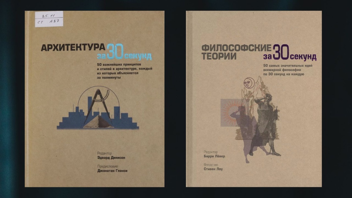 Наткнулась в библиотеке на интересную книжную серию от "Рипол-Классик" - "Узнать за 30 секунд". Это мини-энциклопедии по разным отраслям знаний, раскрывающие сжато, но информативно ту или иную тему. Сейчас в серии больше тридцати книг, но в библиотеке есть только пять, поэтому и говорить буду лишь про них (и тихонько плакать по книгам "Дж. Р.Р.Толкин за 30 секунд", "Стивен Хокинг за 30 секунд" и прочим, которых в фонде нет). Пока я прочитала только две книги из пяти. Полное название: Архитектура за 30 секунд. 50 важнейших принципов и стилей в архитектуре, каждый из которых объясняется за полминуты. Книга начинается с раздела "Основы", который включает древнюю архитектуру - греческую, римскую, византийскую, готическую и так далее. Раздел "Ключевые инновации" посвящен инженерно-строительным решениям - куполам, аркам, колоннам.. Еще один раздел раскрывает особенности проектирования, а другой - теории и концепции. Течениям и стилям посвящены два других раздела, а завершает книгу архитект
