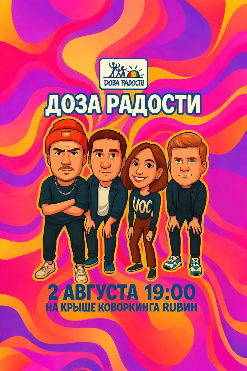 🎶Лето, крыша, музыка! Что-то на идеальном, не так ли?💫 Вот и мы так считаем! Поэтому с огромной радостью приглашаем на концерт группы ДОЗА РАДОСТИ, который состоится 2 августа в 19:00 на крыше коворкинга RUBIN, где мы, конечно же, будем обеспечивать вас чаем!🍵 Кстати, вы можете получить билеты абсолютно бесплатно - снимайте ролики под песни группы Доза Радости, выкладывайте их с хэштэгом #ТанцуйДозуРадости и отметкой сообщества ВК @dozaradostiband, тот кто снимет больше видео, тот и получит бесплатные билеты 🔥 А если вы не хотите ждать - ссылка на покупку билетов 🤍 Встретимся 2 августа в 19:00!