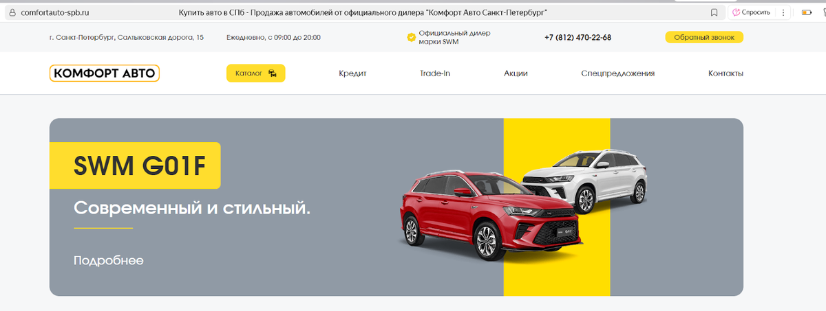 Комфорт Авто — это автосалон в Санкт-Петербурге. Занимается продажей новых автомобилей. В дилерском центре регулярно проводятся акции, благодаря которым можно купить авто с хорошей скидкой. Насколько реальна выгода — разбираемся в нашем обзоре.