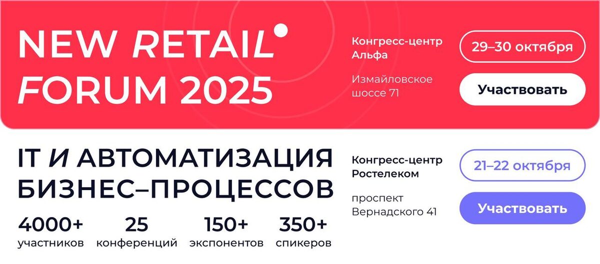 Приглашаем к работе над деловой программой крупнейшего осеннего события для ритейла — New Retail Forum 2025. Две локации в Москве, четыре дня деловой программы в октябре и более 5 000 участников — форум станет главной площадкой для обсуждения новых бизнес-моделей и ритейл форматов, стратегий трендов, и технологий в отрасли. New Retail Forum традиционно объединяет крупнейших омниканалых, офлайн E-Сommerce игроков и ведущие компании, оказывающие IT, HR, маркетинговые, логистические, финансовые услуги. 🔘Сокращение затрат — первый приоритет компаний (лидер с 2022 года) 🔘HR-задачи остаются актуальными: привлечение и удержание персонала 🔘Рост продаж — острая необходимость на фоне снижения прибыли 🔘57% ритейлеров планируют увеличивать инвестиции 🔘Остальные отрасли склоняются к сокращению вложений 🔘Прогнозы роста рынка: 🔘Маркетплейсы — рост 70–80% 🔘В 1 квартале 2025 большинство ритейлеров не показали роста продаж 🔘Данные основаны на опросе 350 руководителей ведущих ритейлеров. 🔹Р